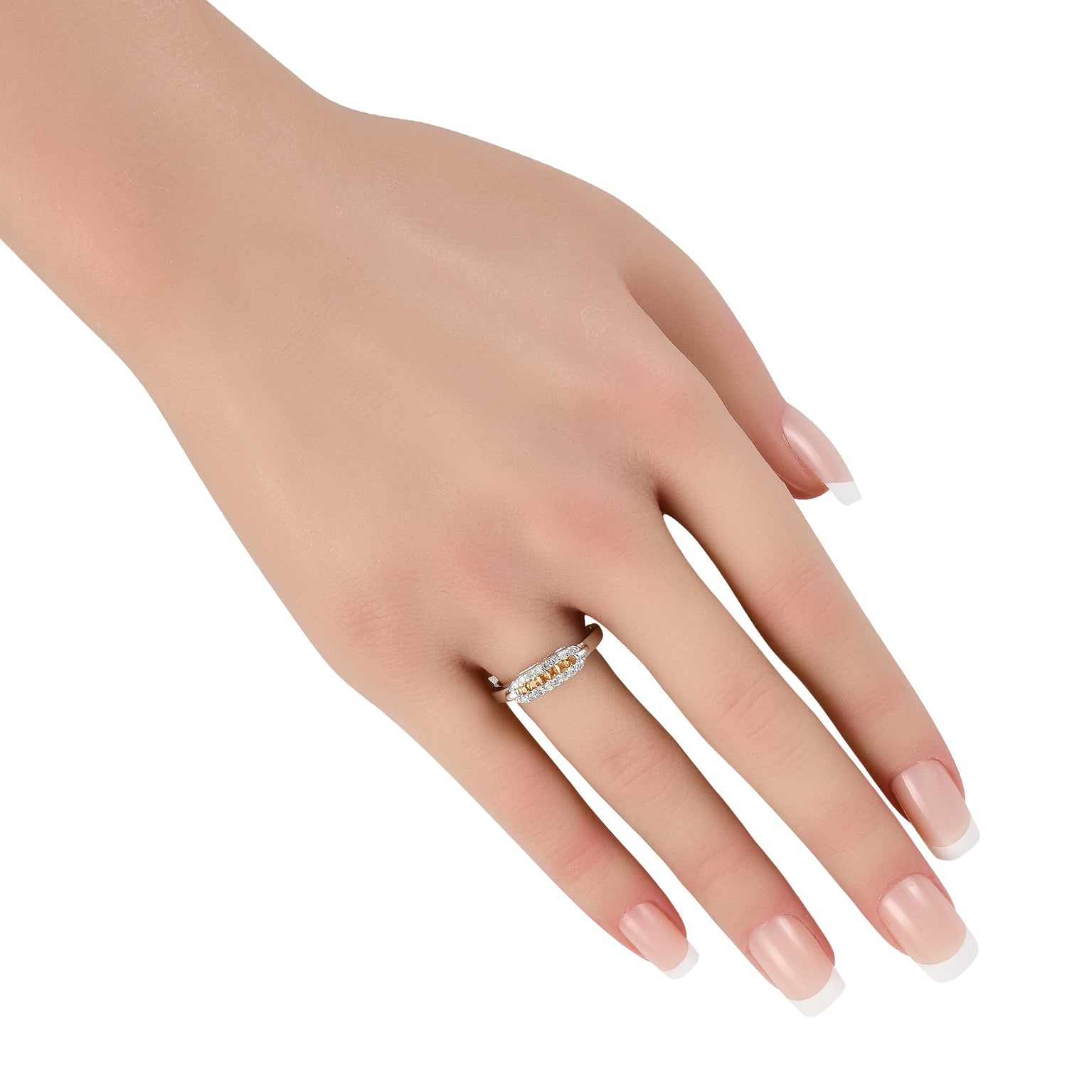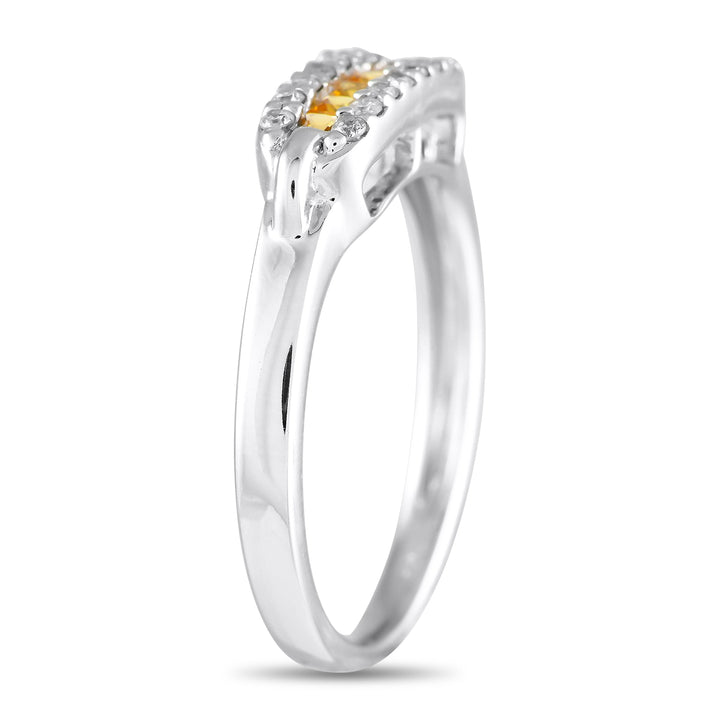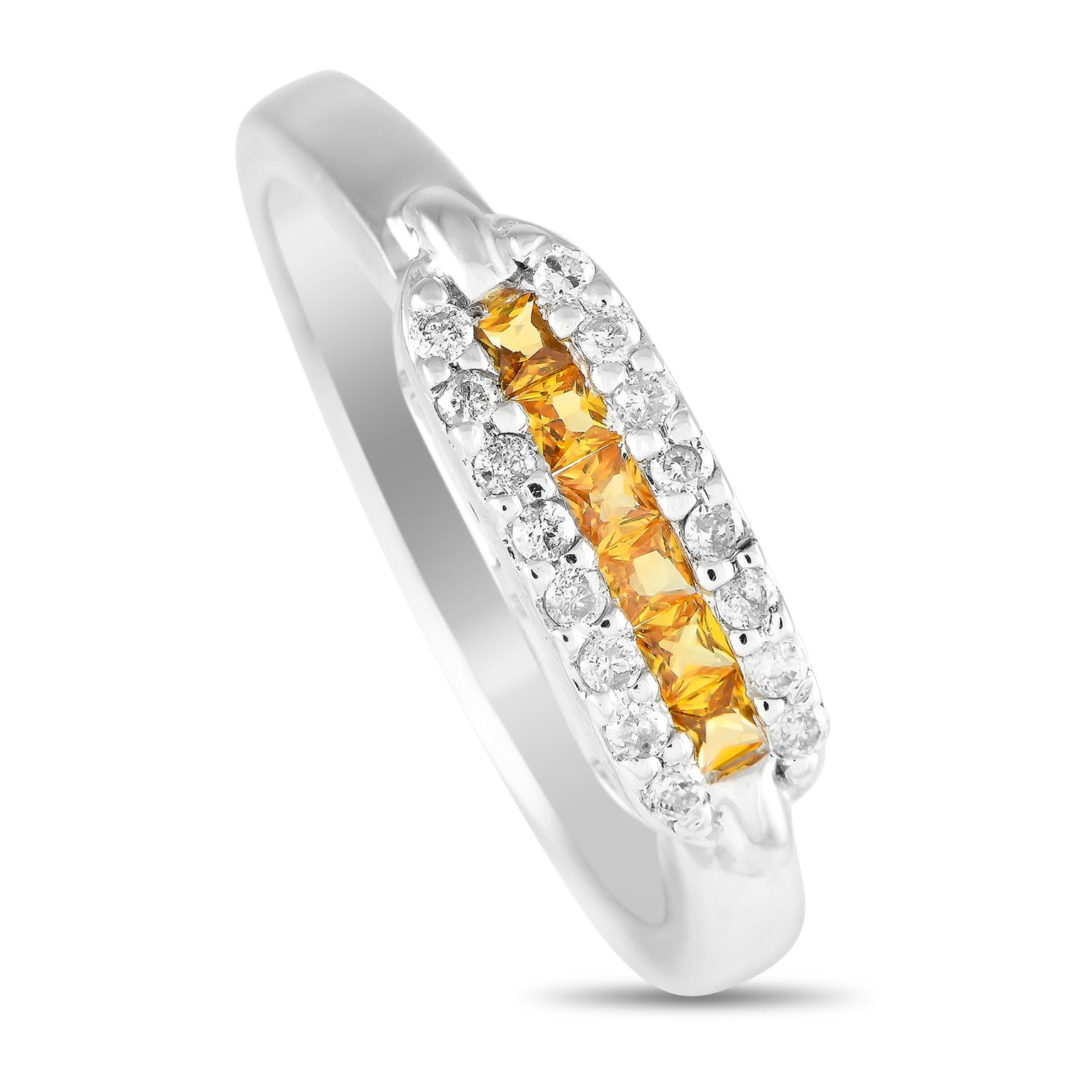 This LB Exclusive 14K White Gold 0.15ct Diamond and Sapphire Ring features yellow sapphires totaling 0.16 carats, set alongside 0.15 carats of sparkling diamonds. The elegant combination, set in 14K white gold, makes for a timeless and chic piece, perfect for enhancing any jewelry collection.
