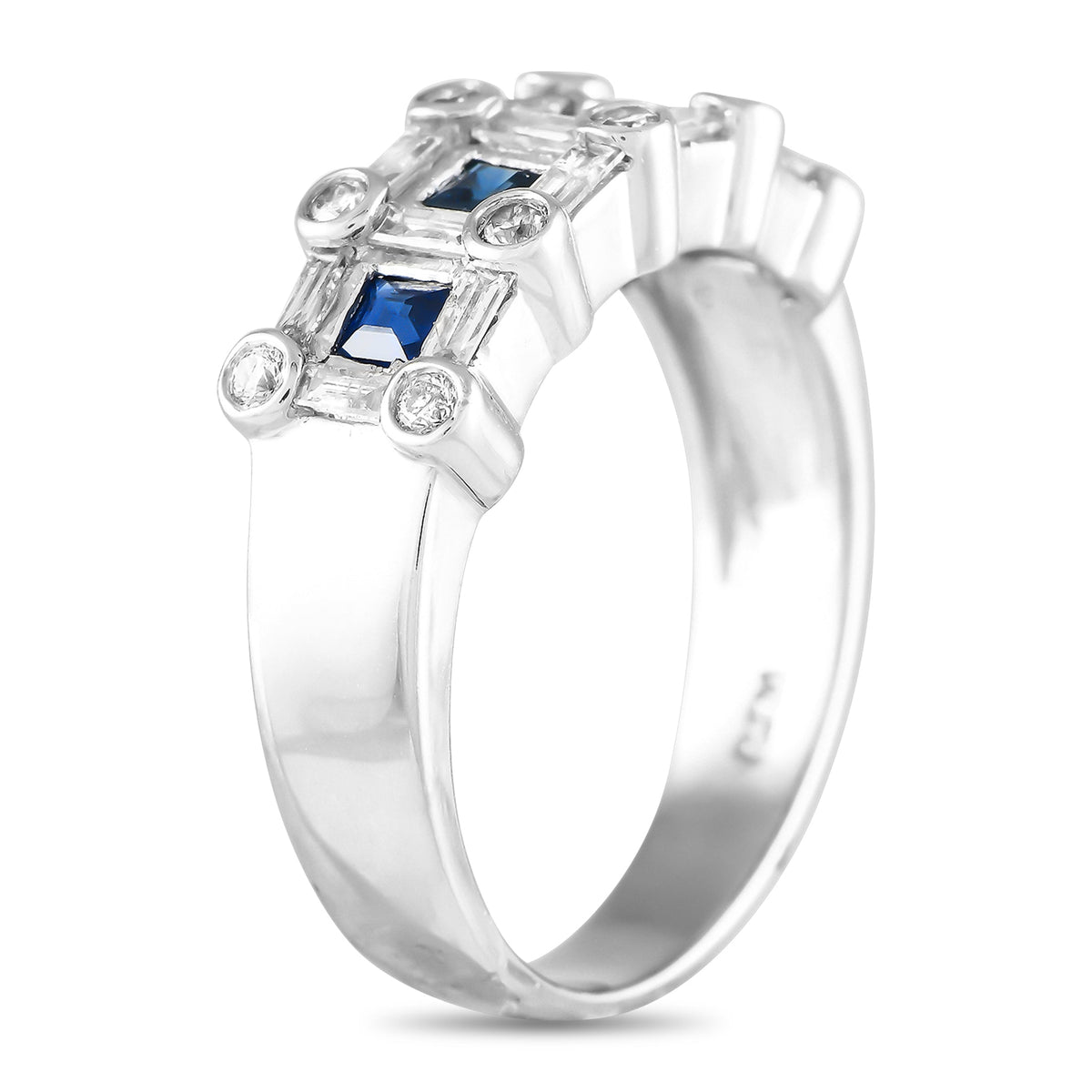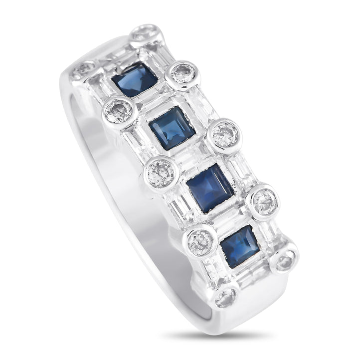 Crafted in 14K white gold. Set with 0.50 carats of sapphires and 0.60 carats of diamonds. Total diamond weight: 0.60ct. Average band width: 4mm.