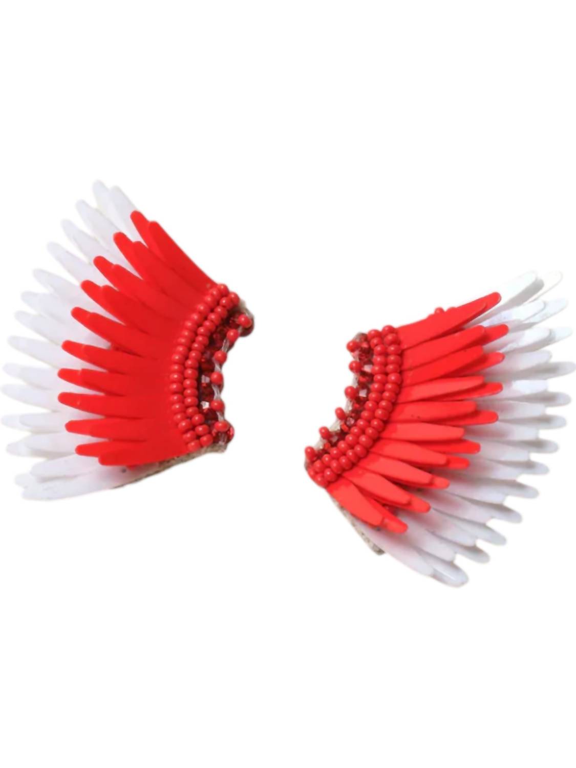 These Women's Mini Madeline Earrings in Red/White by Mignonne Gavigan feature sequins, genuine leather backing, and seed beads. The earrings are 2.5' long and offer a bold statement with a vibrant color combination.