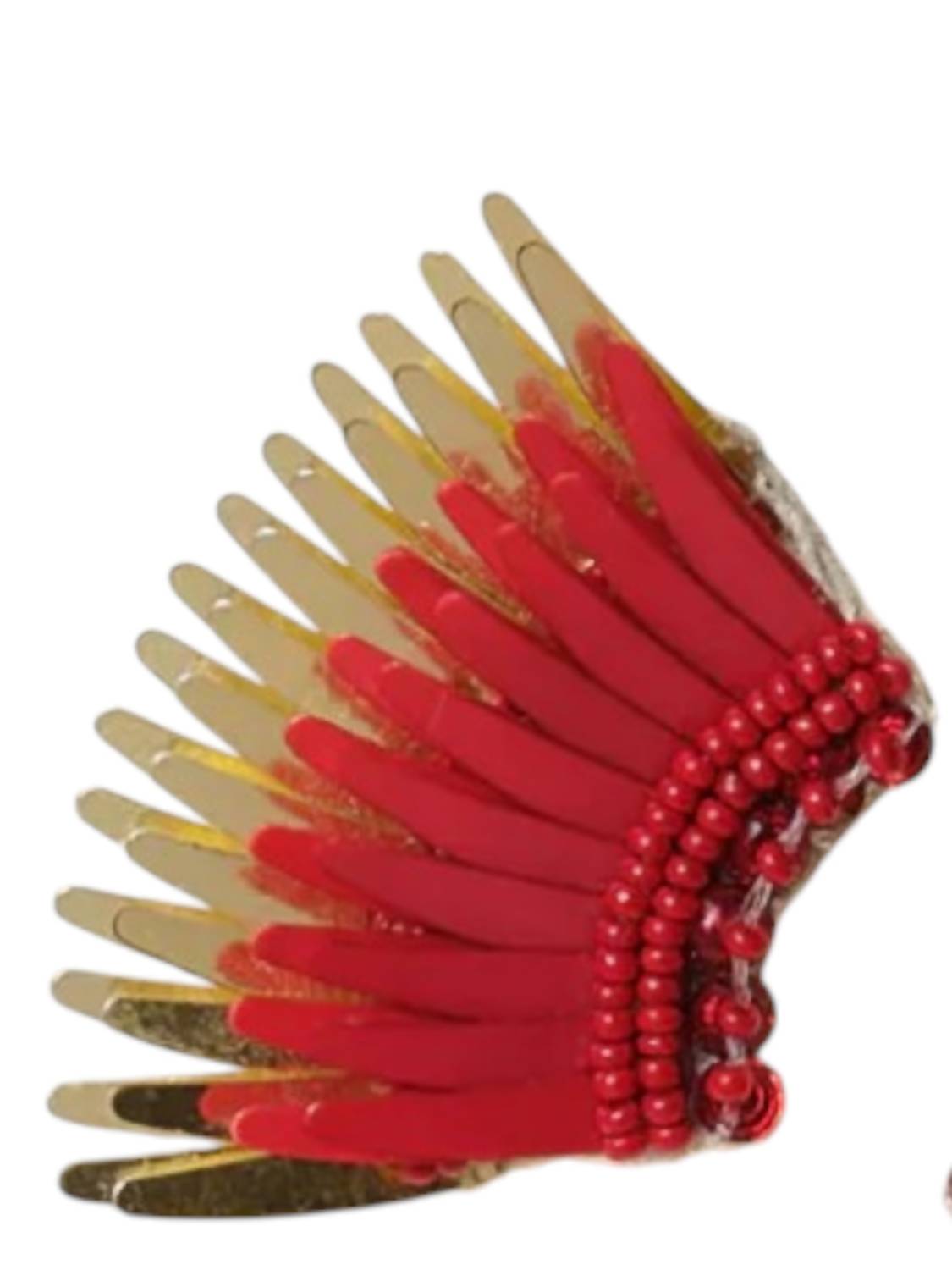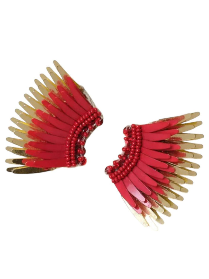 These Women's Mini Madeline Earrings in Crimson/Gold by Mignonne Gavigan feature sequins, genuine leather backing, and seed beads for a playful yet elegant look. The earrings offer a bold design with a 2.50' length and 2.25' width.