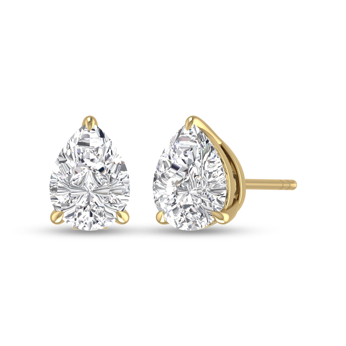 Lab Grown 1/2 Carat Pear Shaped Solitaire Diamond Earrings In 14K Yellow Gold