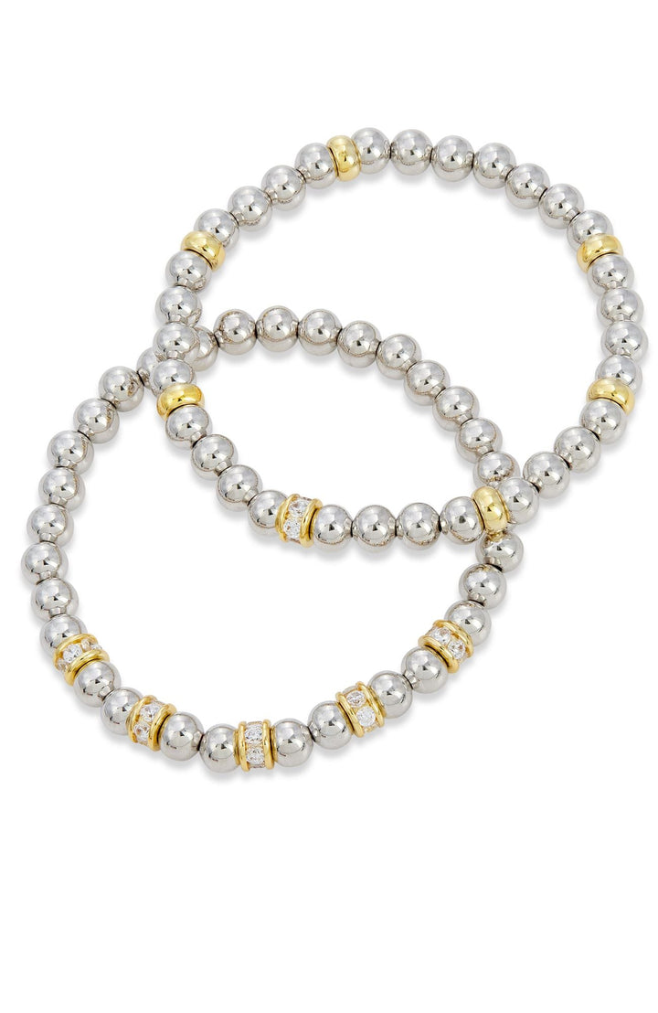This 18K T/T Plated Beads Stretch Bracelet by Savvy Cie is a luxurious addition to your jewelry collection. Featuring 6mm stretch beads with white CZ stones, this bracelet offers a perfect fit and a stylish, comfortable wear for any wrist.