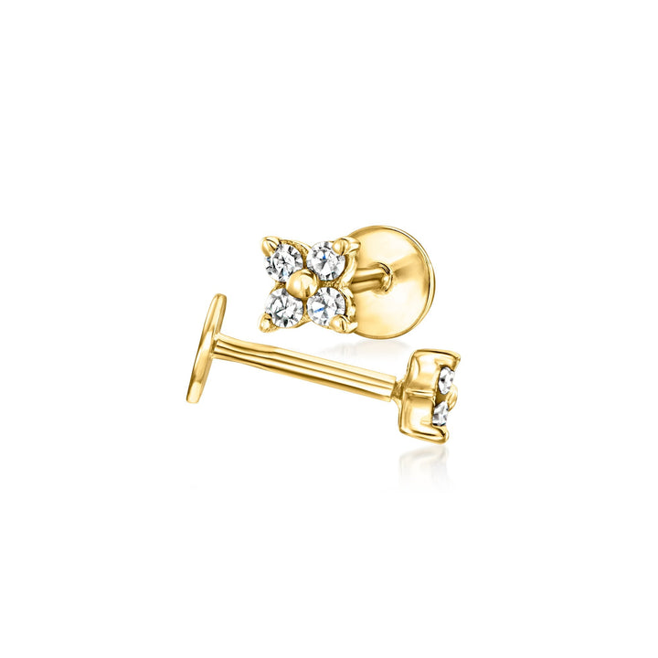 Canaria 0.10- Diamond Clover Flat-back Stud Earrings In 10kt Yellow Gold