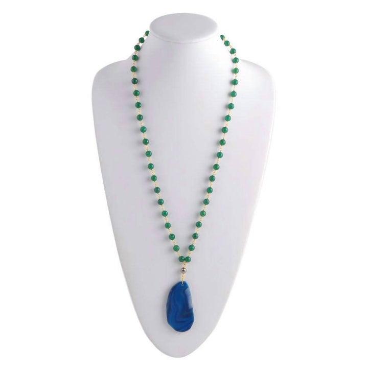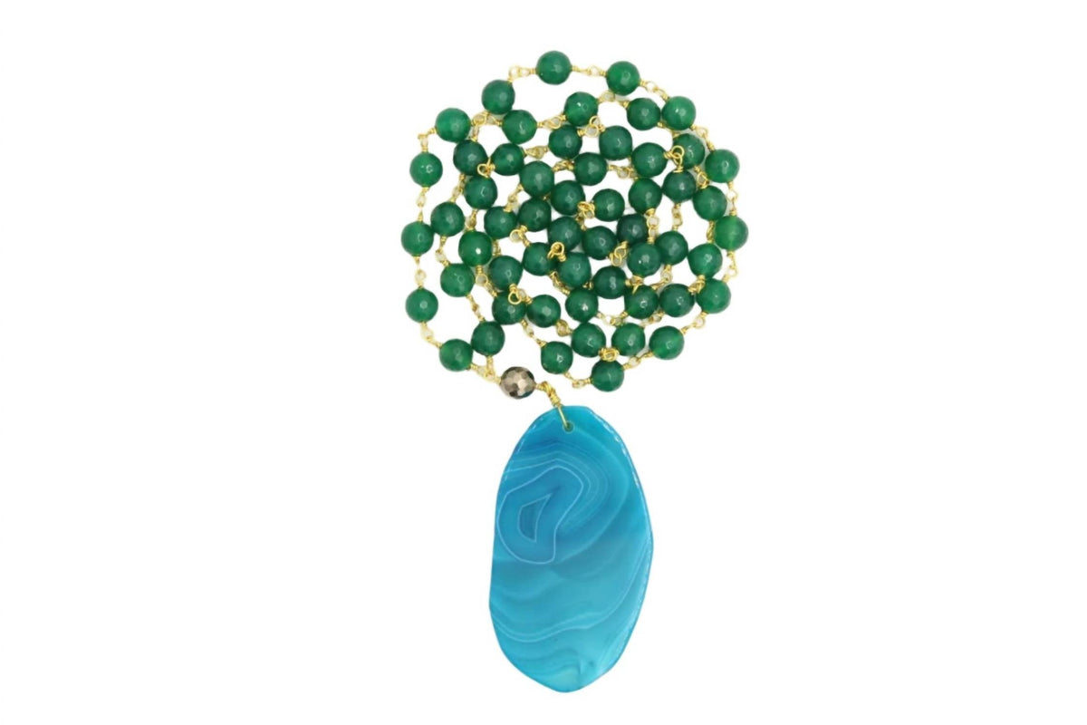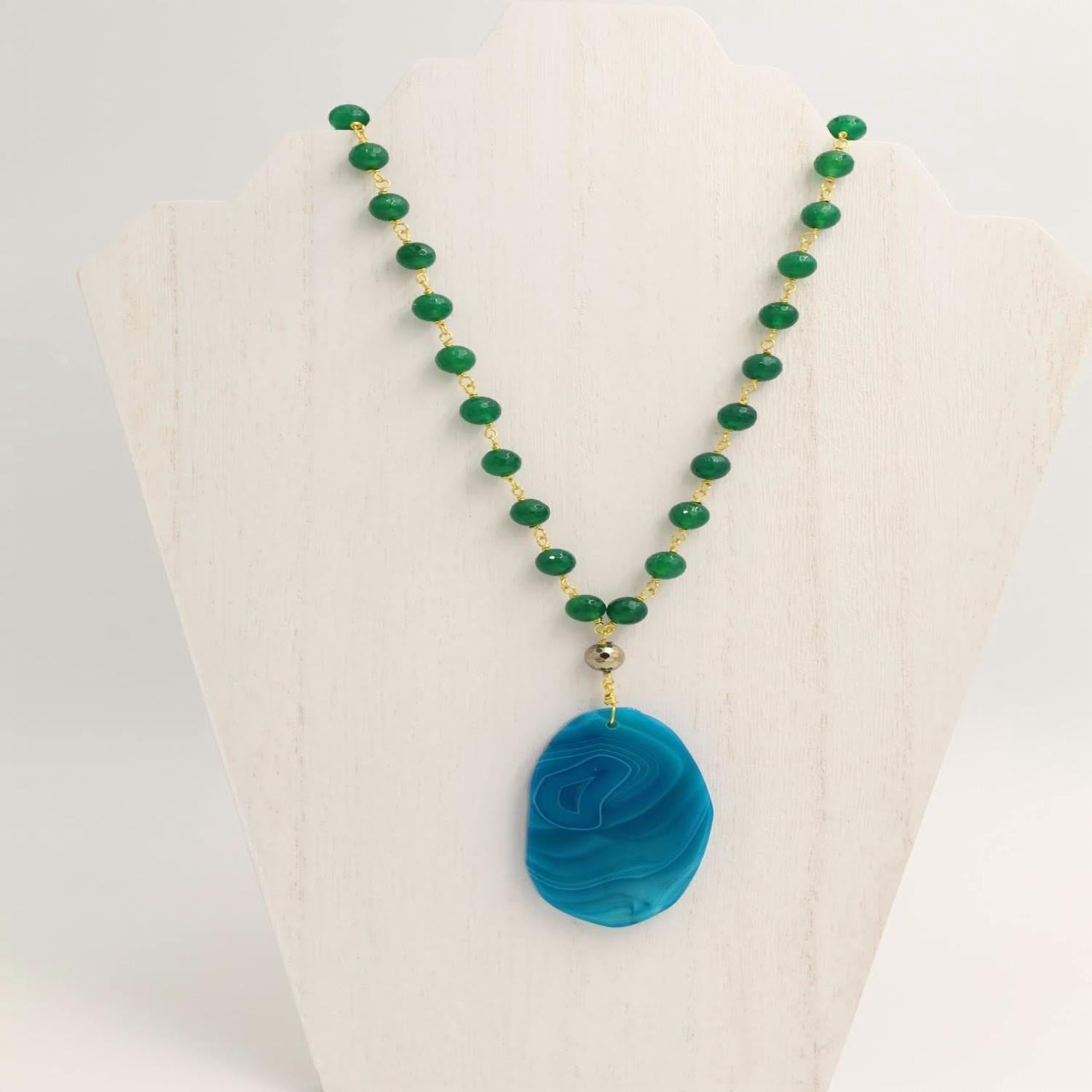 Genuine blue agate and green onyx gemstones. Handcrafted design for an earthy appeal.