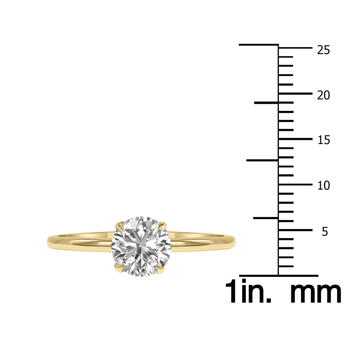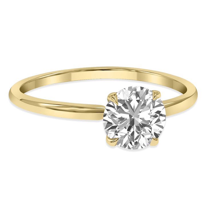 Lab-grown round brilliant diamond (1 carat) set in 14K yellow gold.