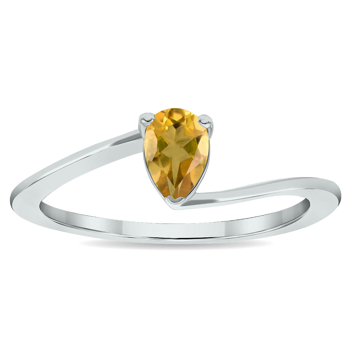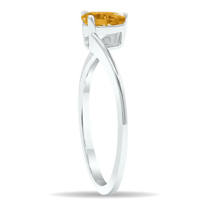 Crafted in 10k white gold. Features a 6x4mm natural pear-shaped citrine gemstone.