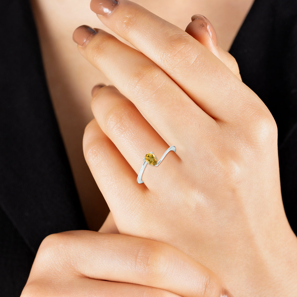 This Solitaire Citrine Wave Ring by SSELECTS offers golden warmth in a clean, modern setting. A genuine pear-shaped citrine, glowing in vibrant yellow-orange tones, is prong set at the center of a 10k white gold wave band. A beautifully dainty choice for daily wear, especially for those drawn to sunny, joyful energy.