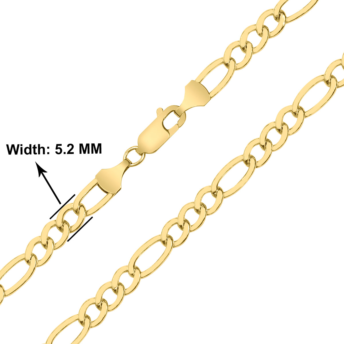 14k Yellow Gold Filled 5.2mm Figaro Bracelet with Lobster Clasp