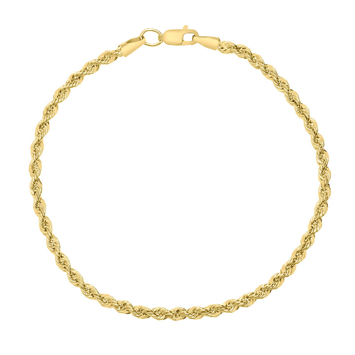 14k Yellow Gold Filled 3.3mm Rope Chain Bracelet with Lobster Clasp