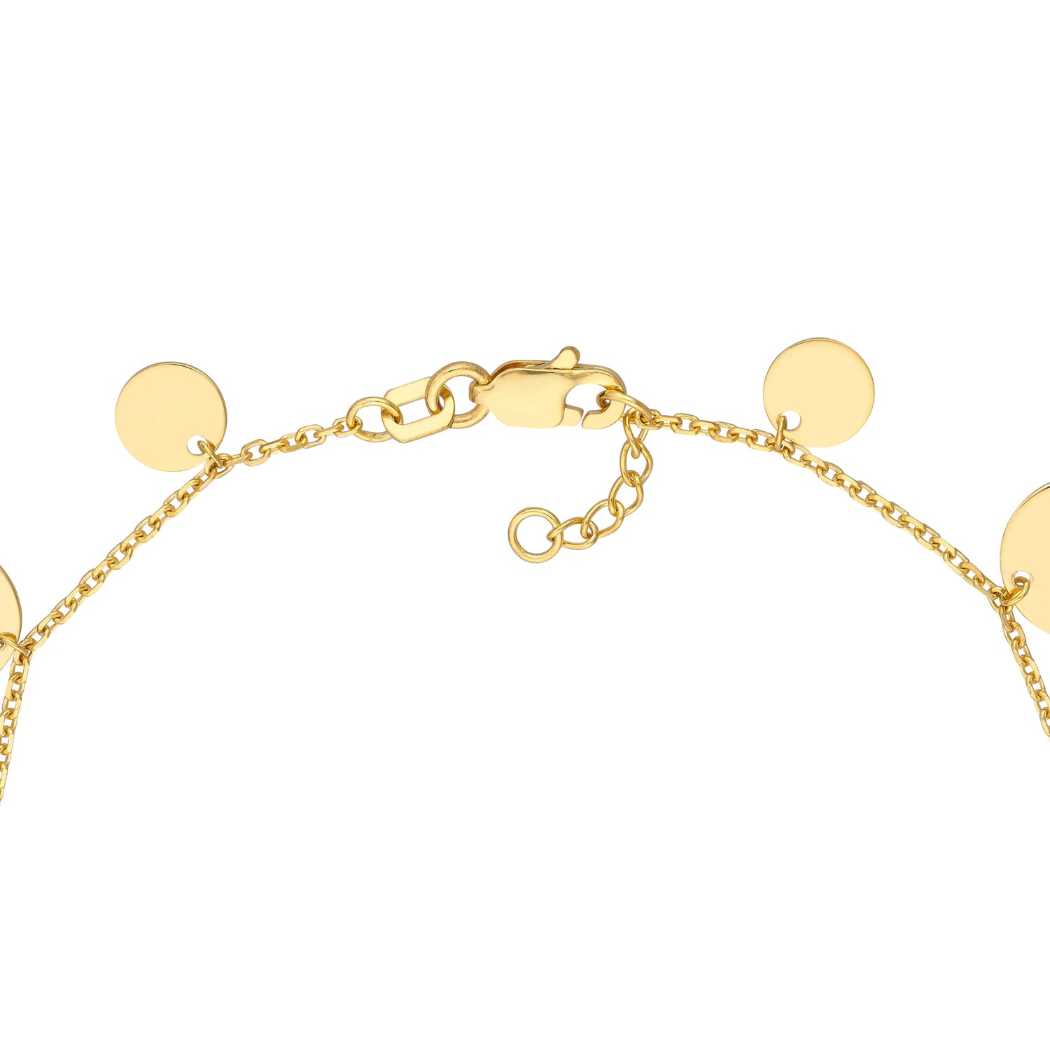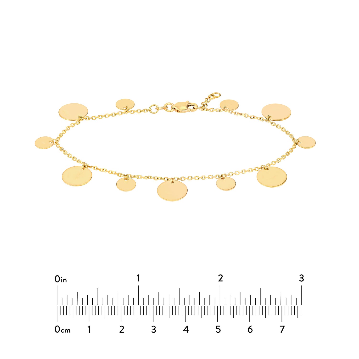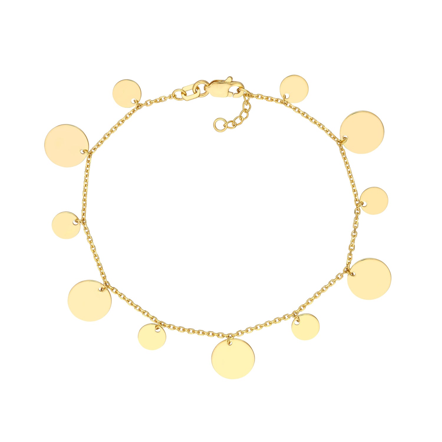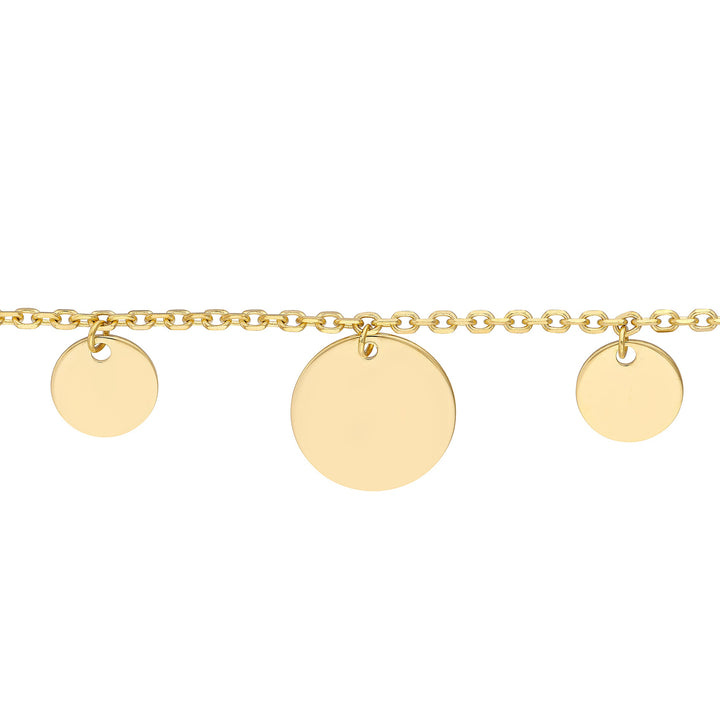 14k Yellow Gold, alternating-size discs. Adjustable lobster clasp.