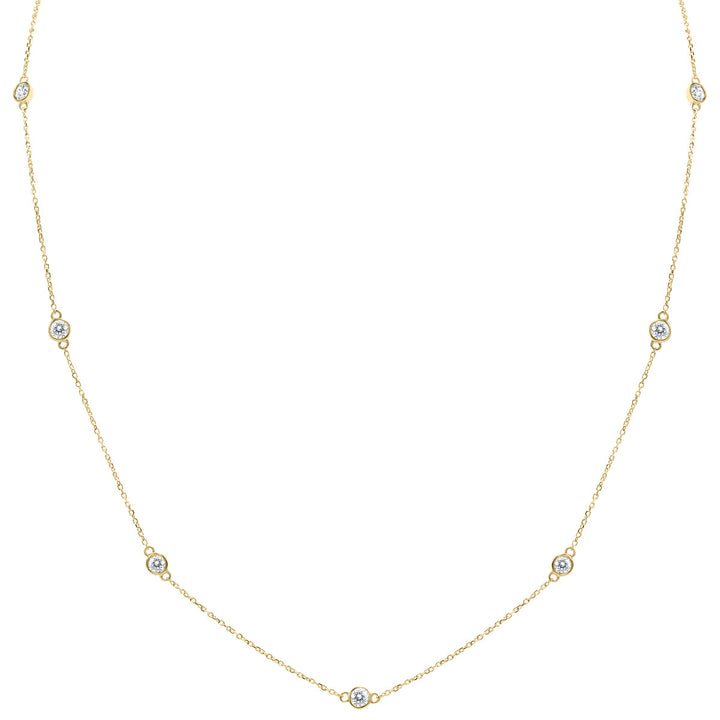 1 Carat TW Bezel Set Diamond Station Necklace In 14K Yellow Gold