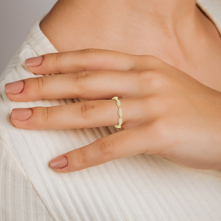 This Dainty Thin Diamond Stackable Band by SSELECTS offers a subtle shimmer in glowing 10k yellow gold. With its fine silhouette and 12 hand-set diamonds, this lightweight ring is perfect for stacking or adding a delicate accent to any look. A refined touch for wedding sets or personal collections.
