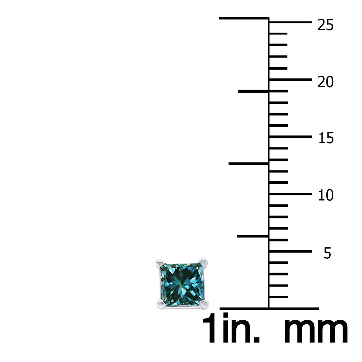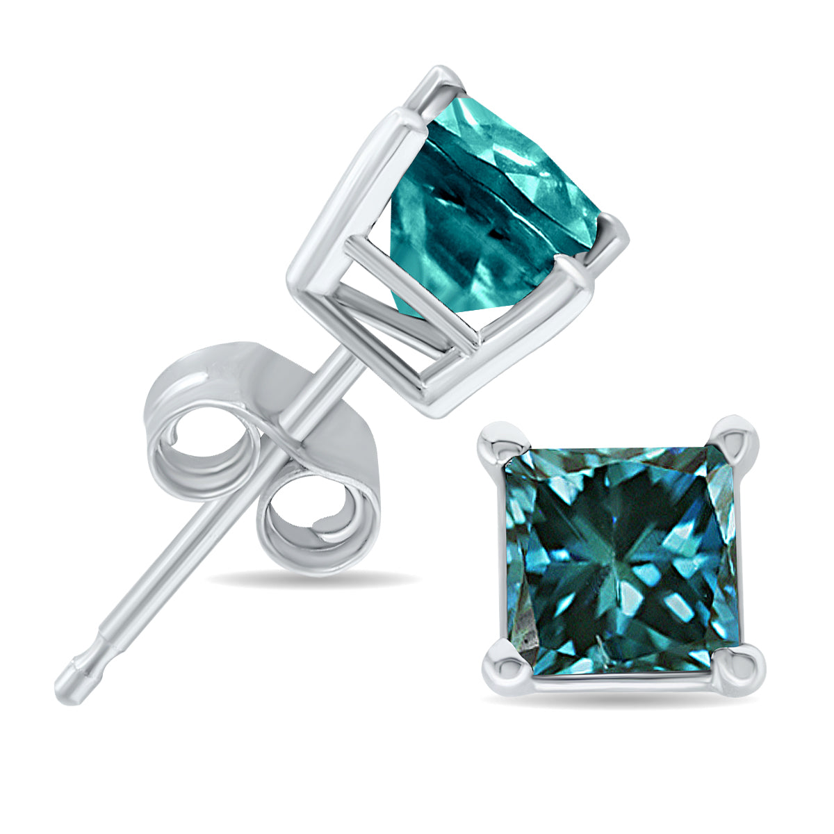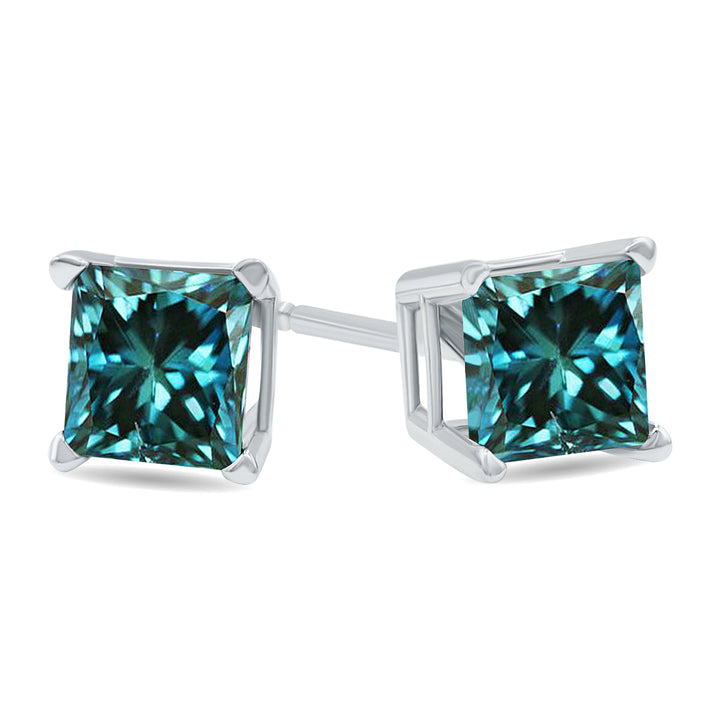 1 Carat Princess Cut Blue Diamond Solitaire Earrings In 10K White Gold