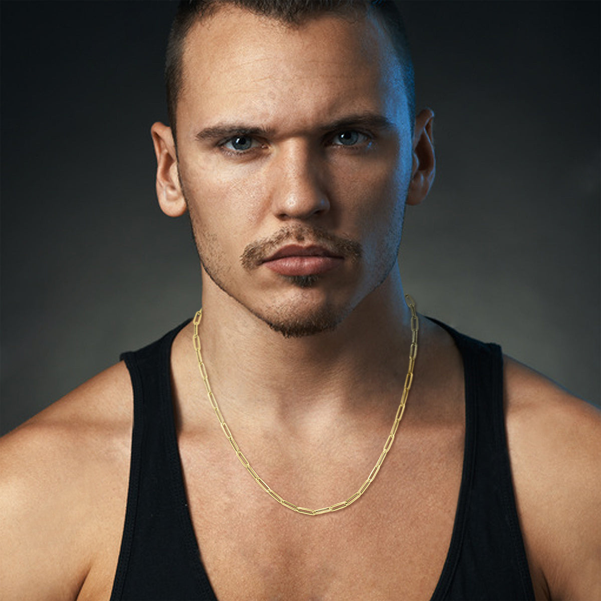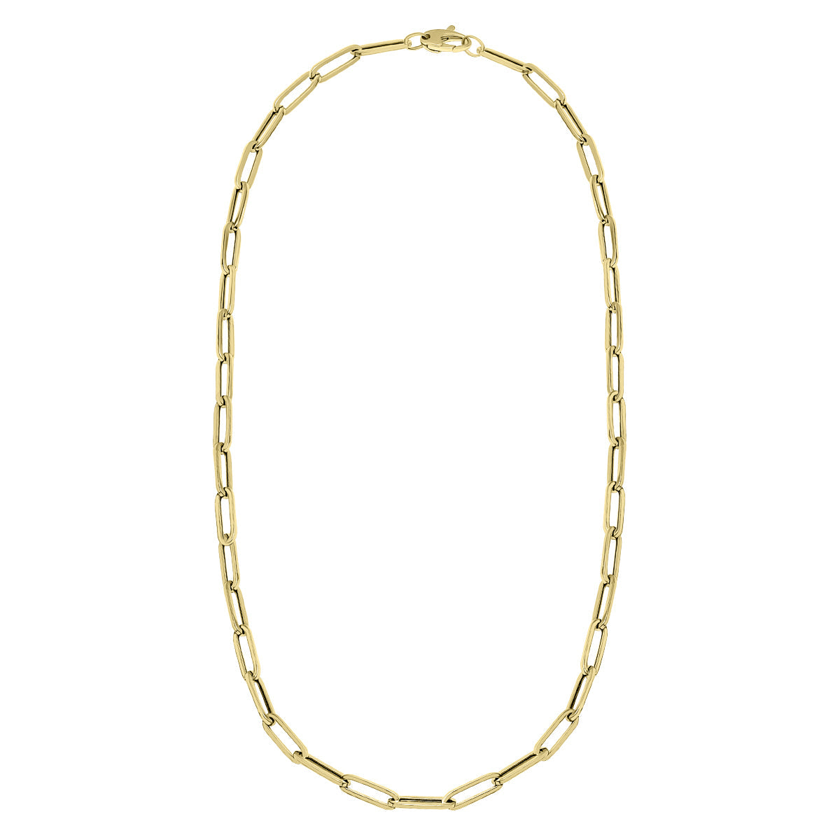 This 10K Yellow Gold 4.2mm Lite Paperclip Chain Necklace by SSELECTS is perfect for any occasion. With its sleek design and 18-inch length, it adds both sophistication and versatility to your collection.
