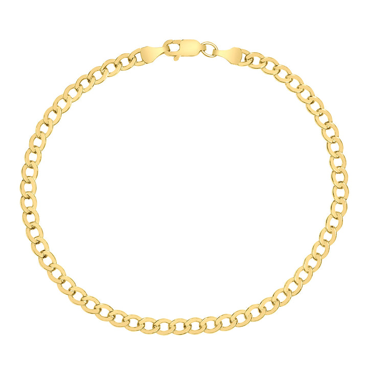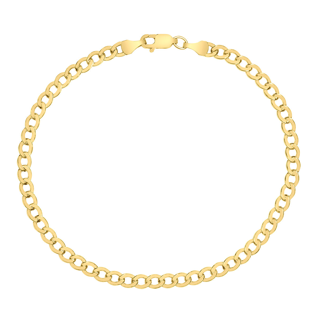 Crafted in 14K yellow gold-filled metal. Curb link design, 4.1mm width. Length: 8.5 inches. Lobster clasp closure.