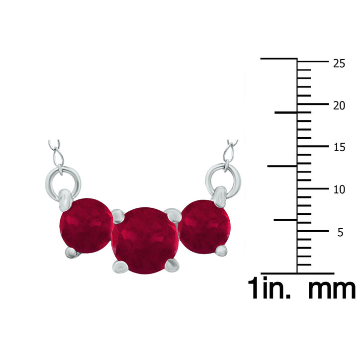1 Carat TW Ruby Three Stone Pendant Necklace 14K White Gold