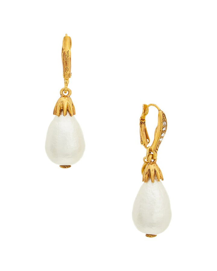 Oscar De La Renta 24K Pearl Small Drop Earrings