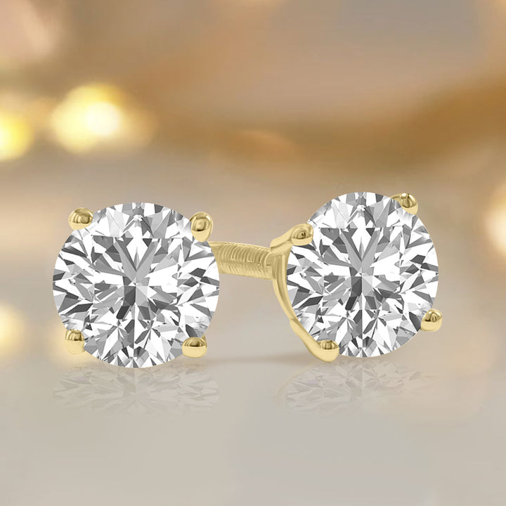 Crafted in 14K yellow gold with 1 Carat TW lab-grown diamonds. Featuring F-G color and VS1-VS2 clarity. Set in 4-prong basket settings with push-back posts for secure wear.