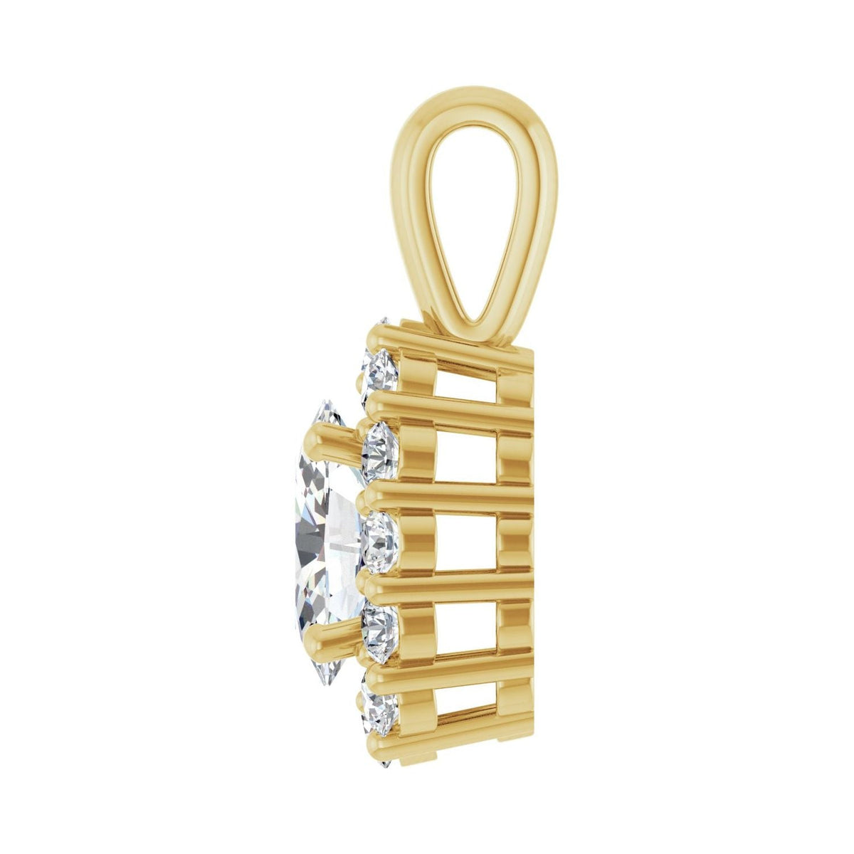 This 14K Gold 3/4ct Lab-grown Diamond Halo-style Pendant by Diamond2Deal features a 3/4-carat lab-grown diamond surrounded by a radiant halo, set in yellow gold. Perfect for daily wear or special events, it offers a sustainable luxury.