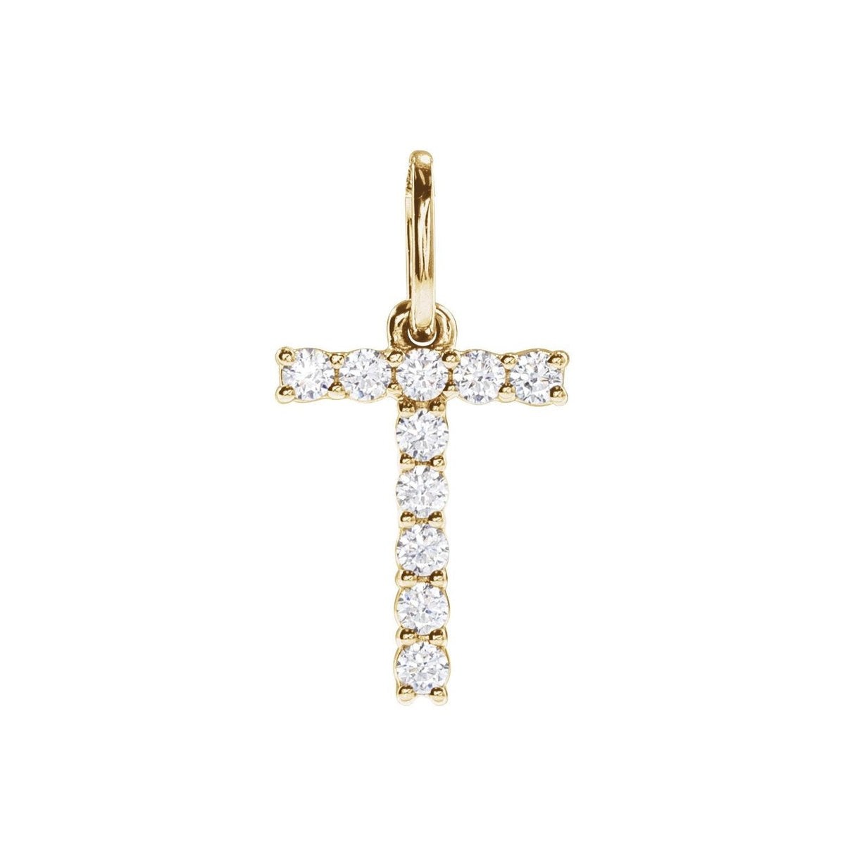 14k Gold 1/6ct Lab-grown Diamond Initial T Pendant