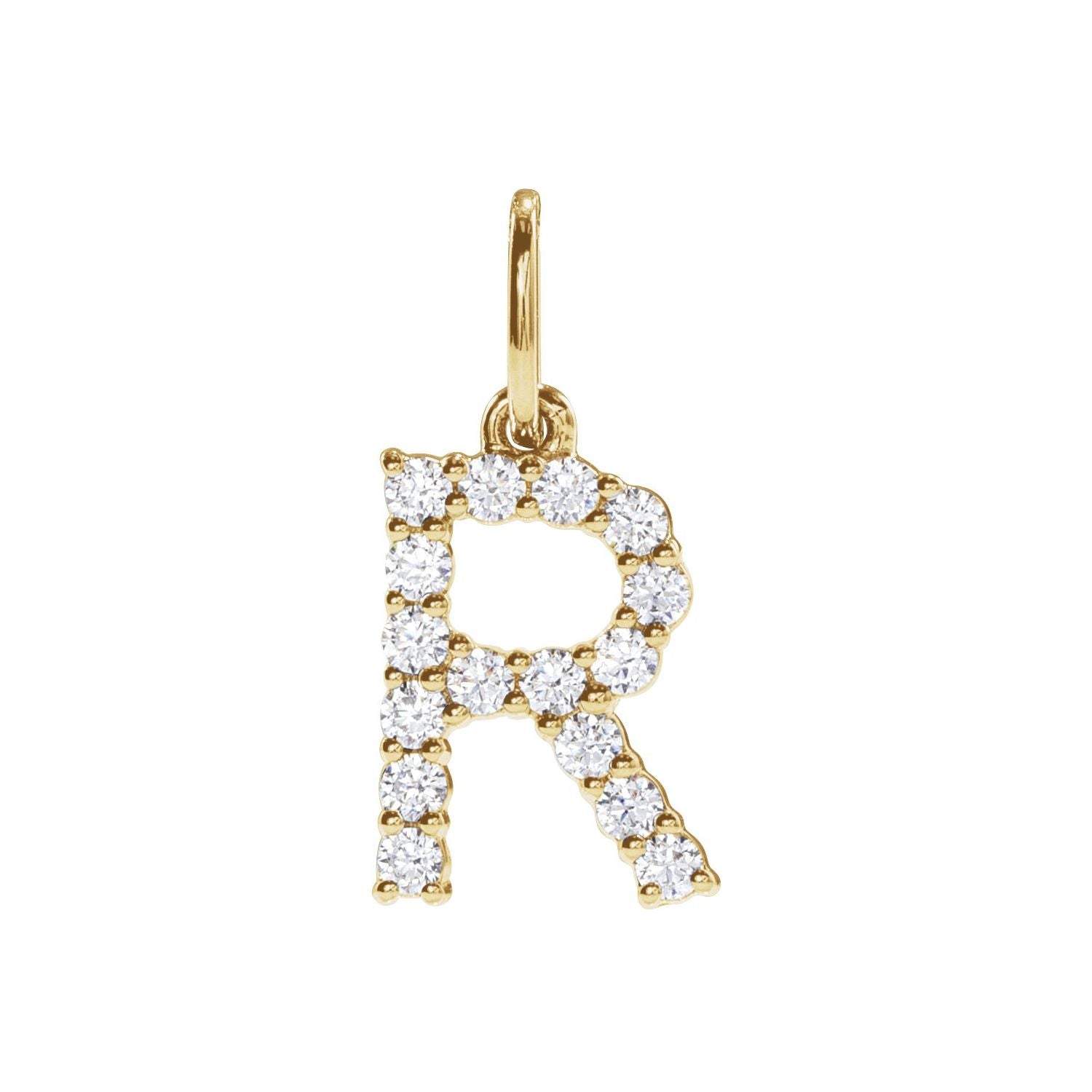 14k Gold 1/4ct Lab-grown Diamond Initial R Pendant