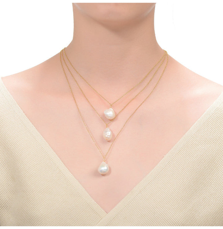 Sterling Silver 14k Gold Plated With Freshwater Pearl Layered Necklace