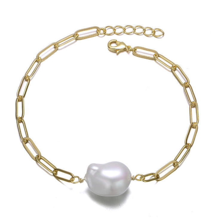 Sterling Silver 14k Gold Plated with White Freshwater Pearl Paperclip Link Bracelet