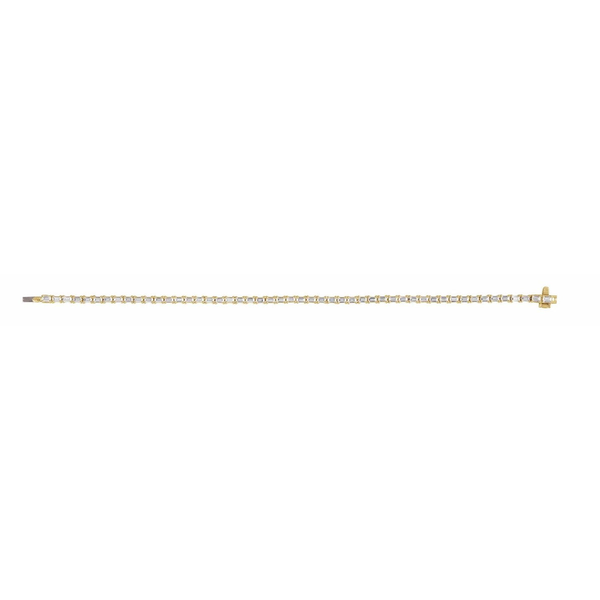 14K yellow gold with 5 carats of lab-grown diamonds (G-H color, SI clarity). Box clasp closure. Length: 7 inches.