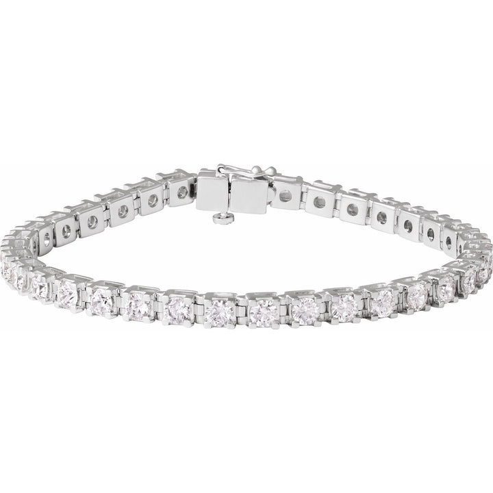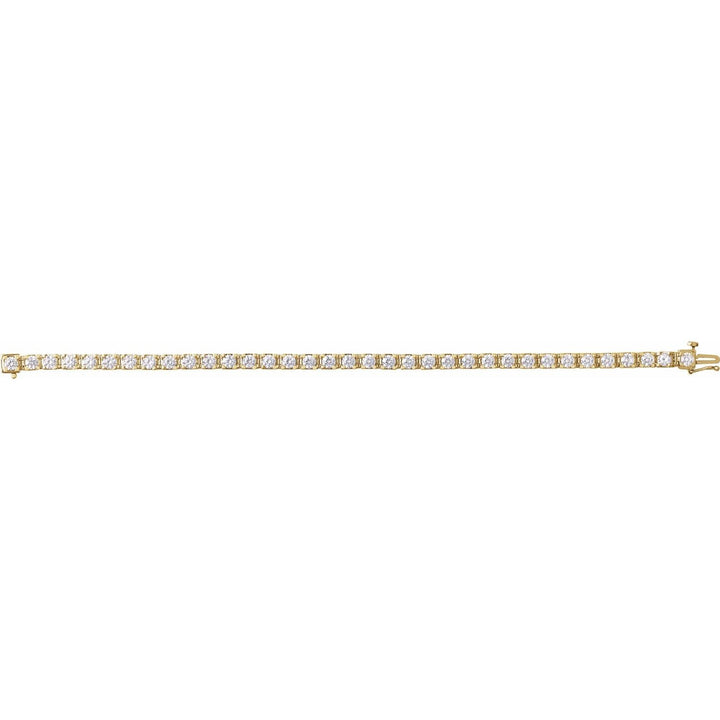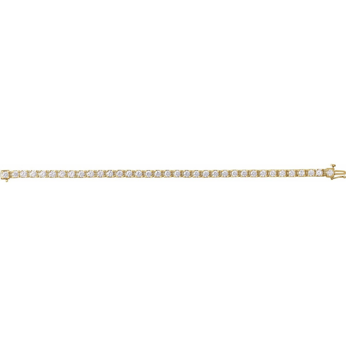 14k yellow gold with 7 carats of lab-grown diamonds (G-H color, SI clarity). Box clasp closure. Length: 7.25 inches.