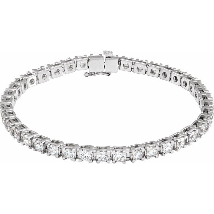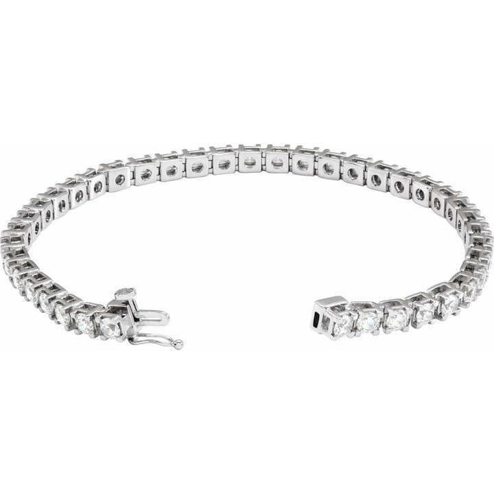14k white gold with 6 carats of lab-grown diamonds (G-H color, SI clarity). Box clasp closure. Length: 7.25 inches.