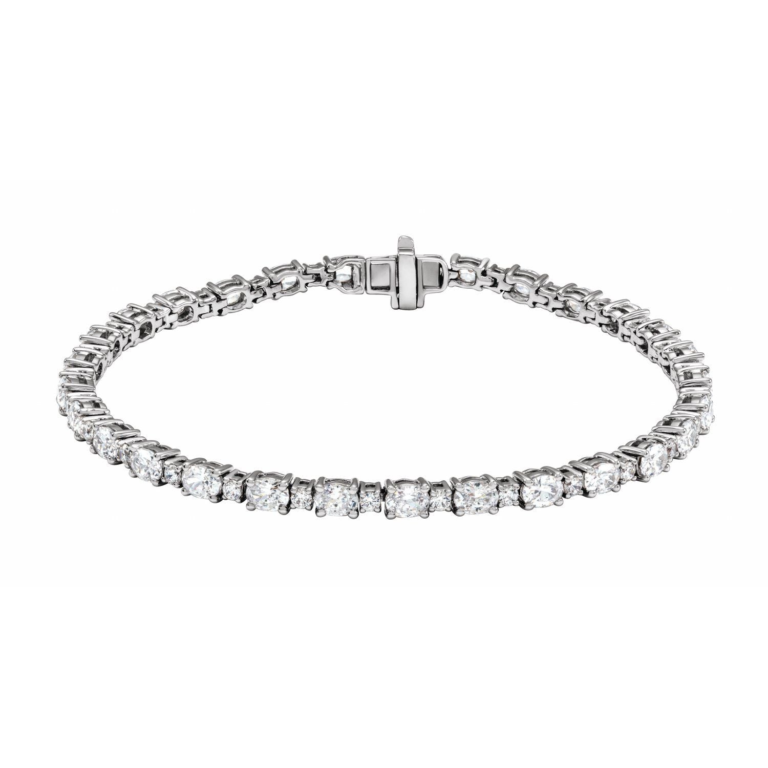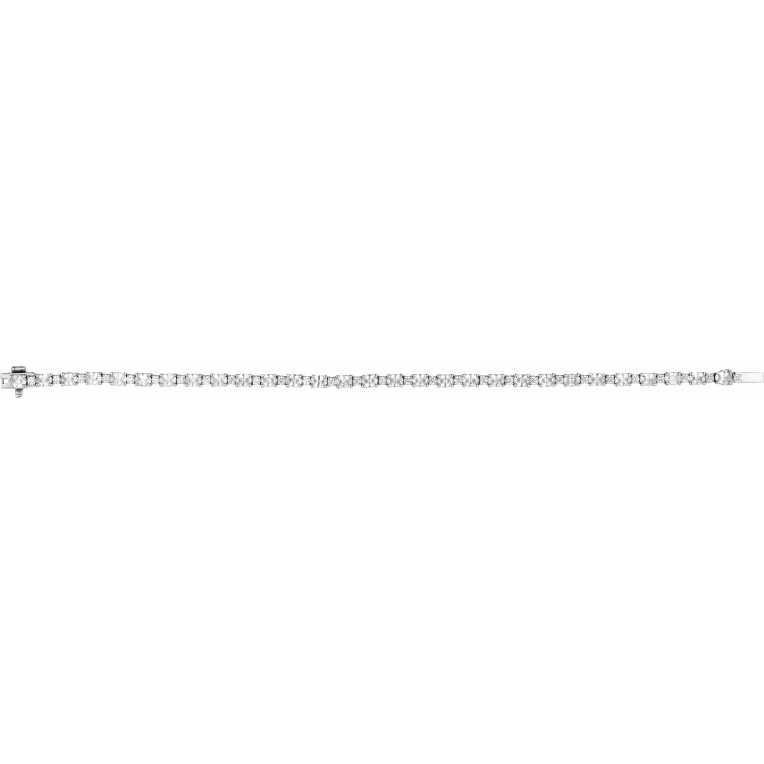 14k white gold with 5.5 carats of lab-grown diamonds (G-H color, SI clarity). Box clasp closure. Length: 7 inches.