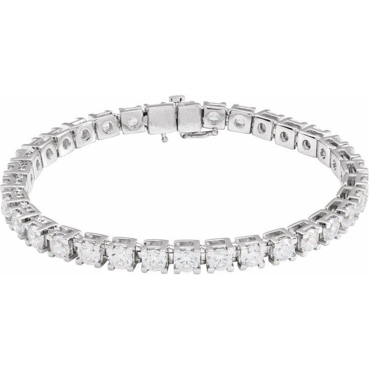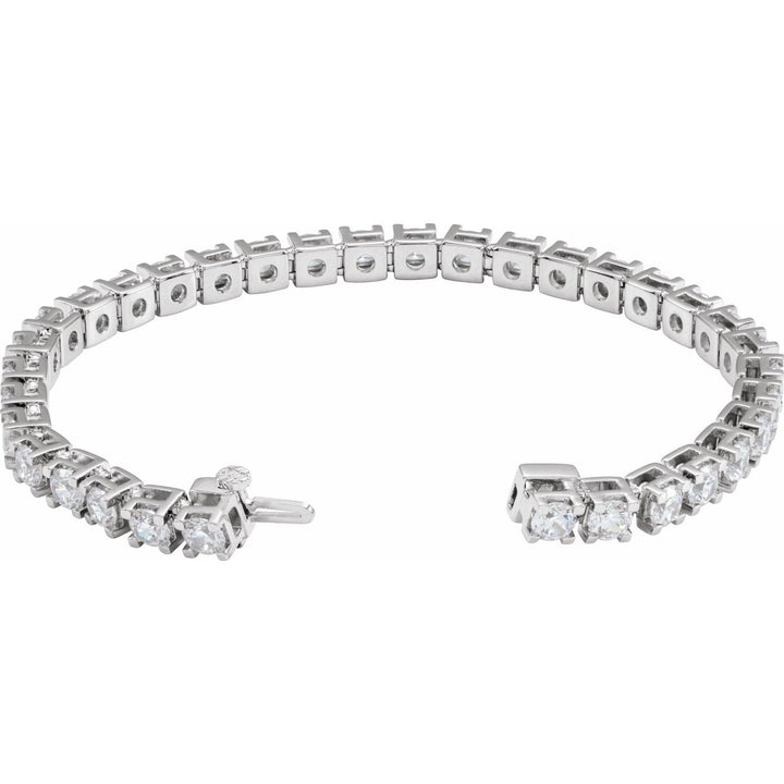 14k white gold with 8 carats of lab-grown diamonds (G-H color, SI clarity). Box clasp closure. Length: 7.25 inches.