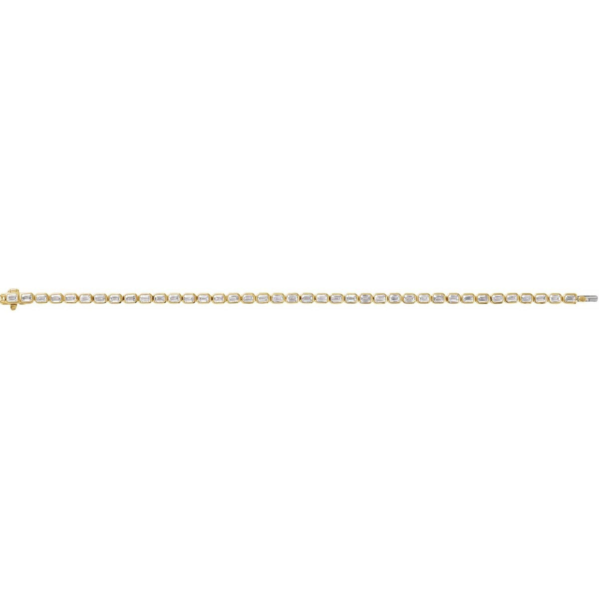 14k yellow gold with 6.25 carats of lab-grown diamonds (G-H color, SI clarity). Box clasp closure. Length: 7 inches. Metal weight: 7.99 grams.