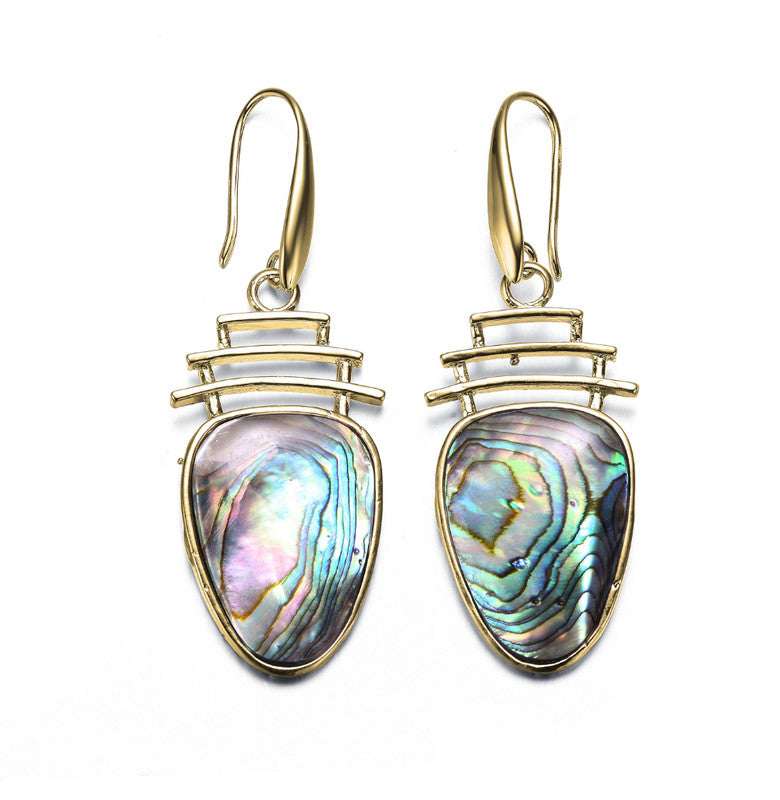 Sterling Silver 14K Gold Plated Abalone Pear Drop Hook Earrings