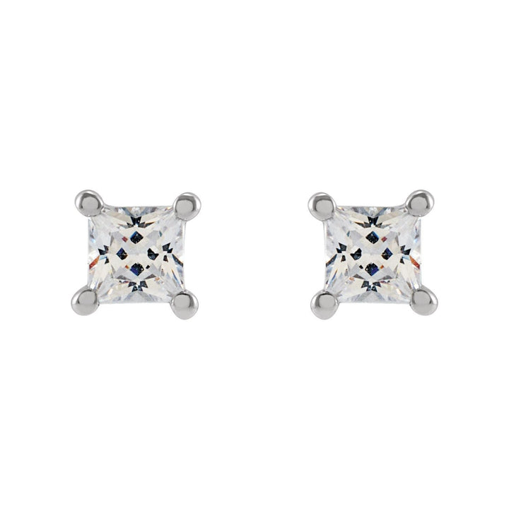 These 14K White Gold 3mm Square 1/3 CTW Lab-Grown Diamond Earrings by Diamond2Deal are elegant and refined. Featuring square-cut diamonds with Color G-H and SI clarity, these timeless studs are perfect for elevating any outfit, from casual to formal.