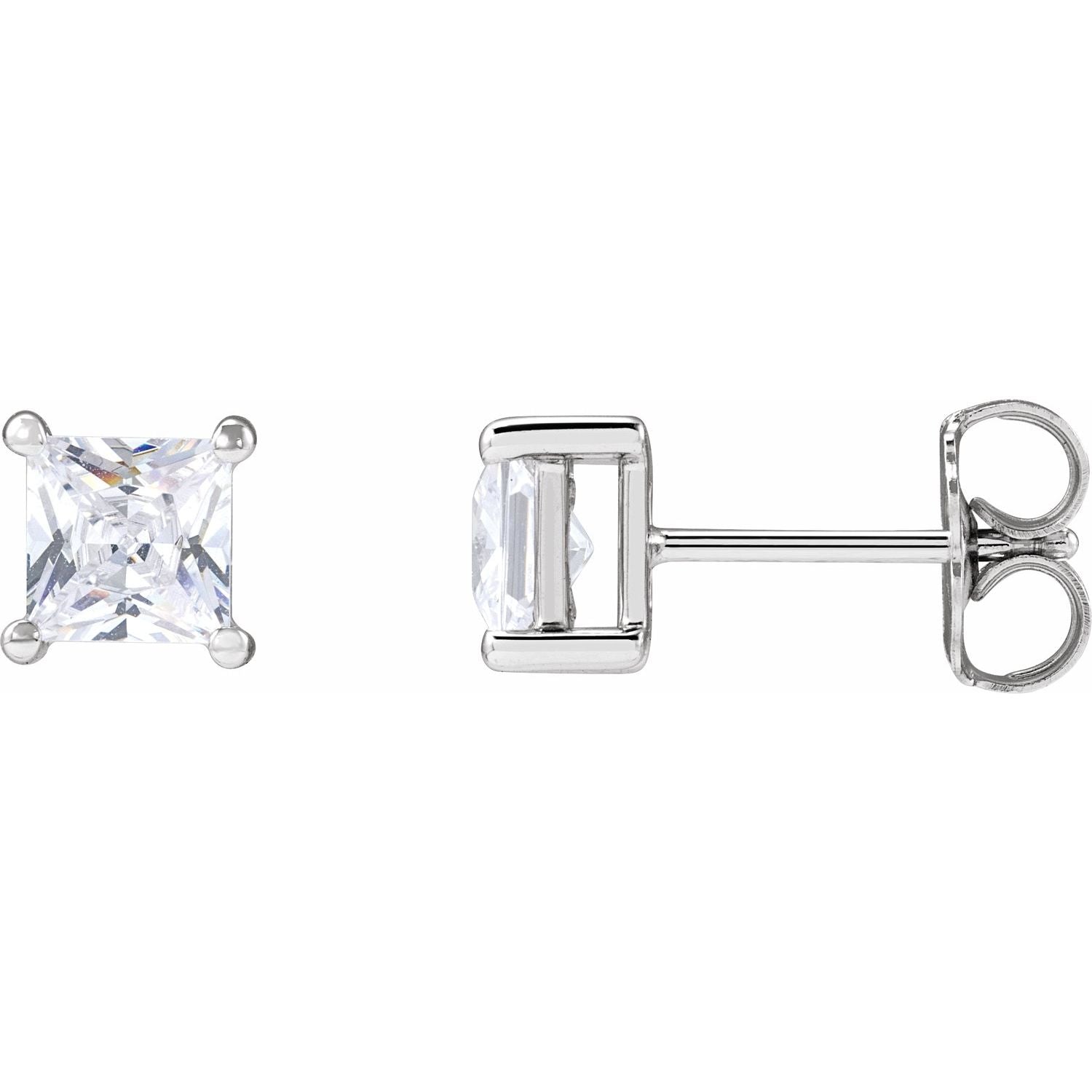 14K White Gold 4.5 Mm Square 1ct Lab-grown Diamond Earrings Clarity SI Color G-H