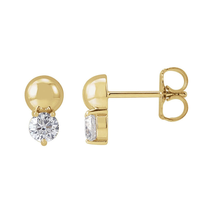 These 14K Yellow Gold 1/3ct Lab-grown Diamond Bead Earring by Diamond2Deal add elegance to any outfit. Featuring Color G-H and SI clarity diamonds, these studs are perfect for daily wear and offer unmatched sparkle and sophistication.