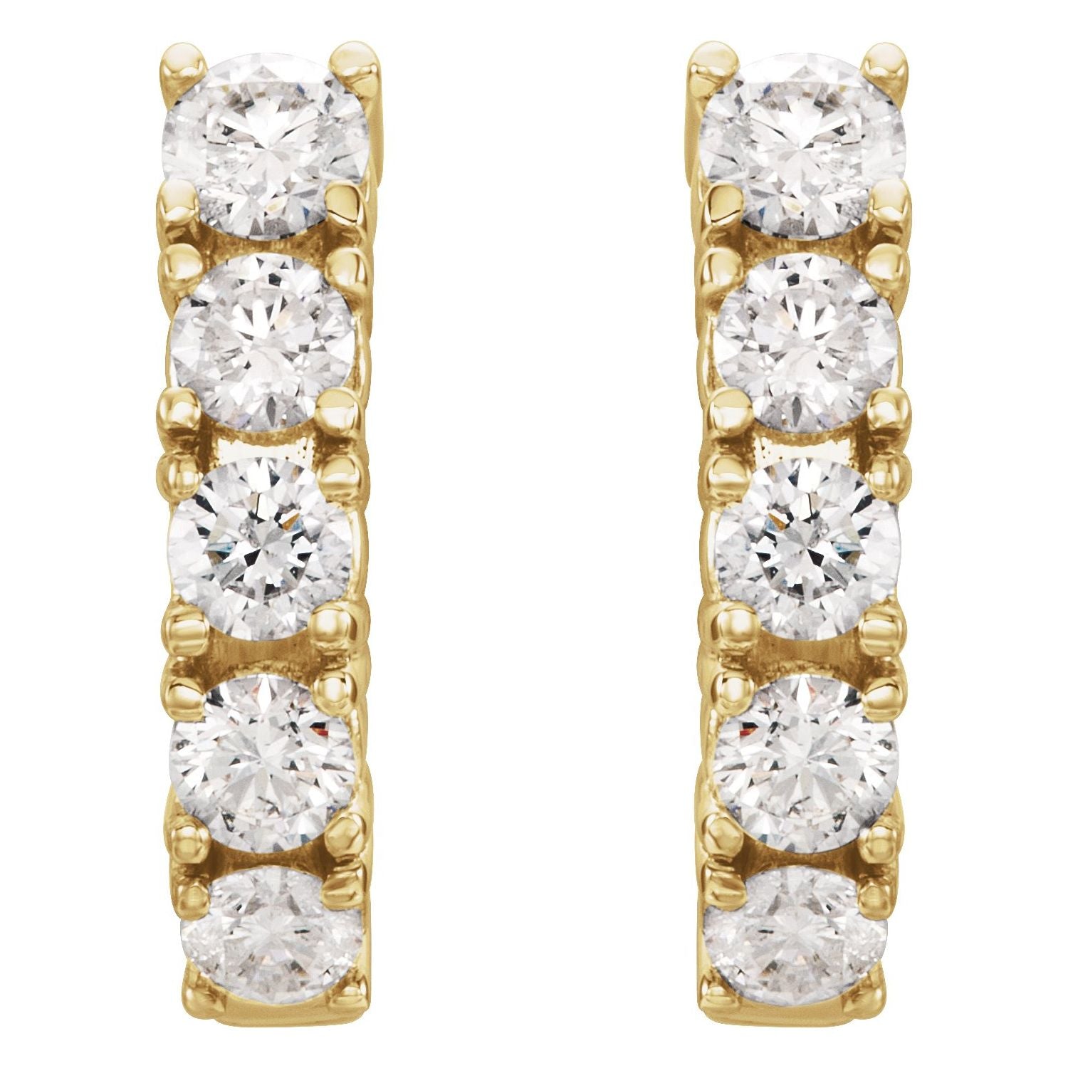 These 14K Yellow Gold 1 1/2 CTW Lab-Grown Diamond Hoop Earrings by Diamond2Deal offer a dazzling display of brilliance. Featuring Color G-H and SI clarity diamonds, they provide a sustainable choice that can be worn for both everyday elegance and special occasions.