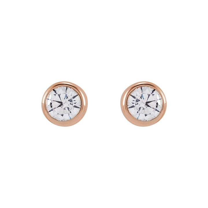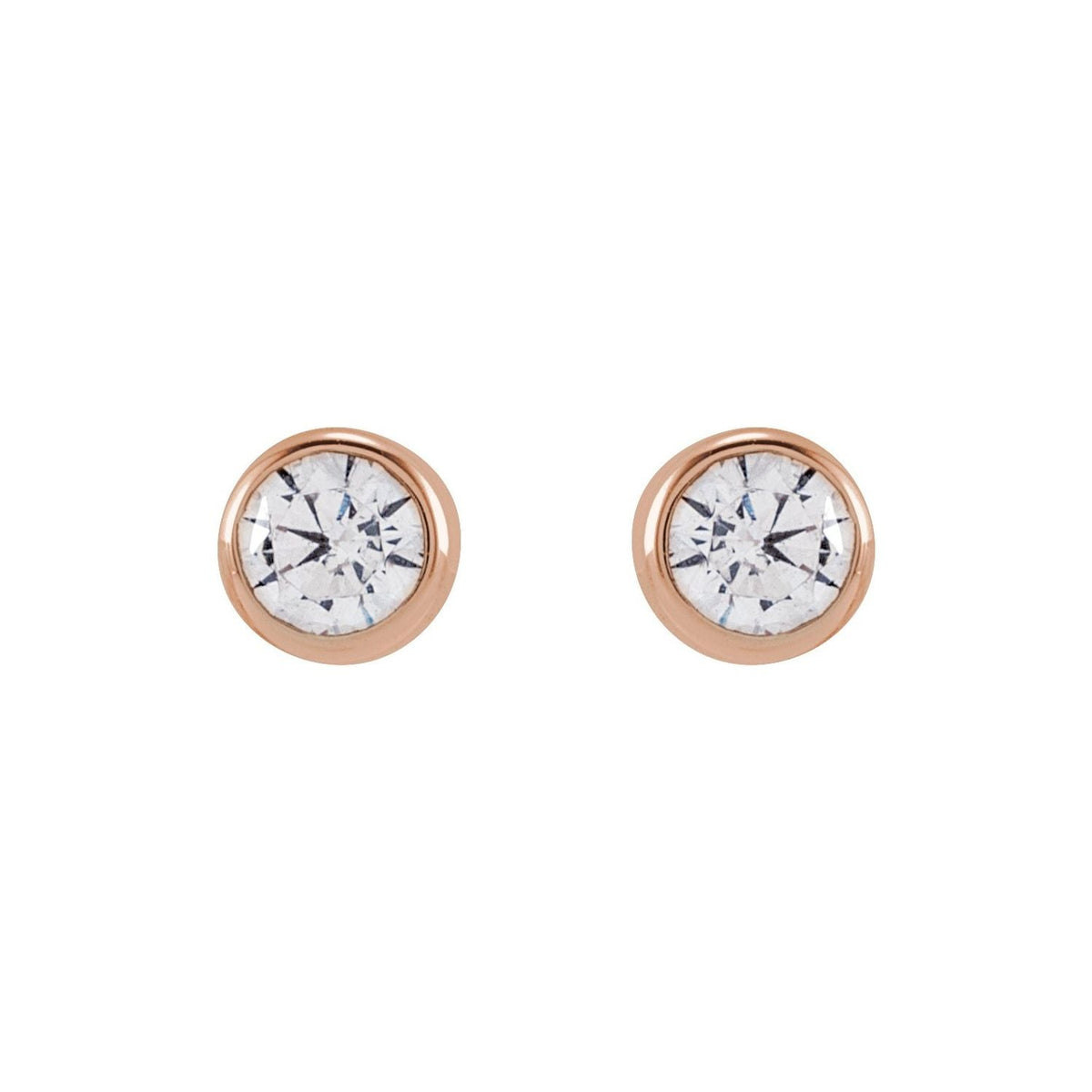 These 14K Rose Gold 3mm Round 1/5ct Lab-Grown Diamond Earrings by Diamond2Deal are designed for elegance with a contemporary twist. Featuring Color G-H and SI clarity diamonds, they offer unmatched sparkle and are perfect for both daily wear and special occasions.
