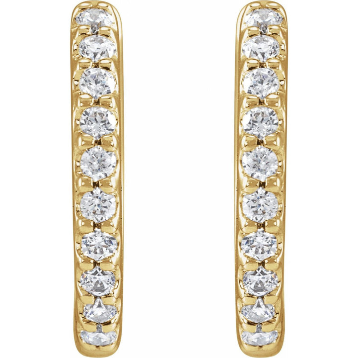 These 14K Yellow Gold 1/3ct Lab-Grown Diamond 12.6mm Hoop Earrings by Diamond2Deal feature brilliant diamonds that offer unmatched sparkle. The timeless design ensures these hoops can be worn for years, making them a staple for any jewelry collection.