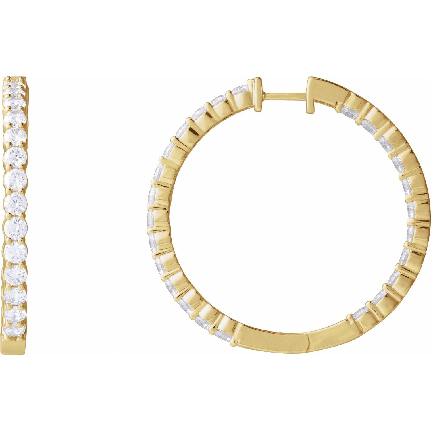14K Gold 5ct Lab-grown Diamond Inside-outside Hinged Hoop Earrings Clarity SI Color G-H