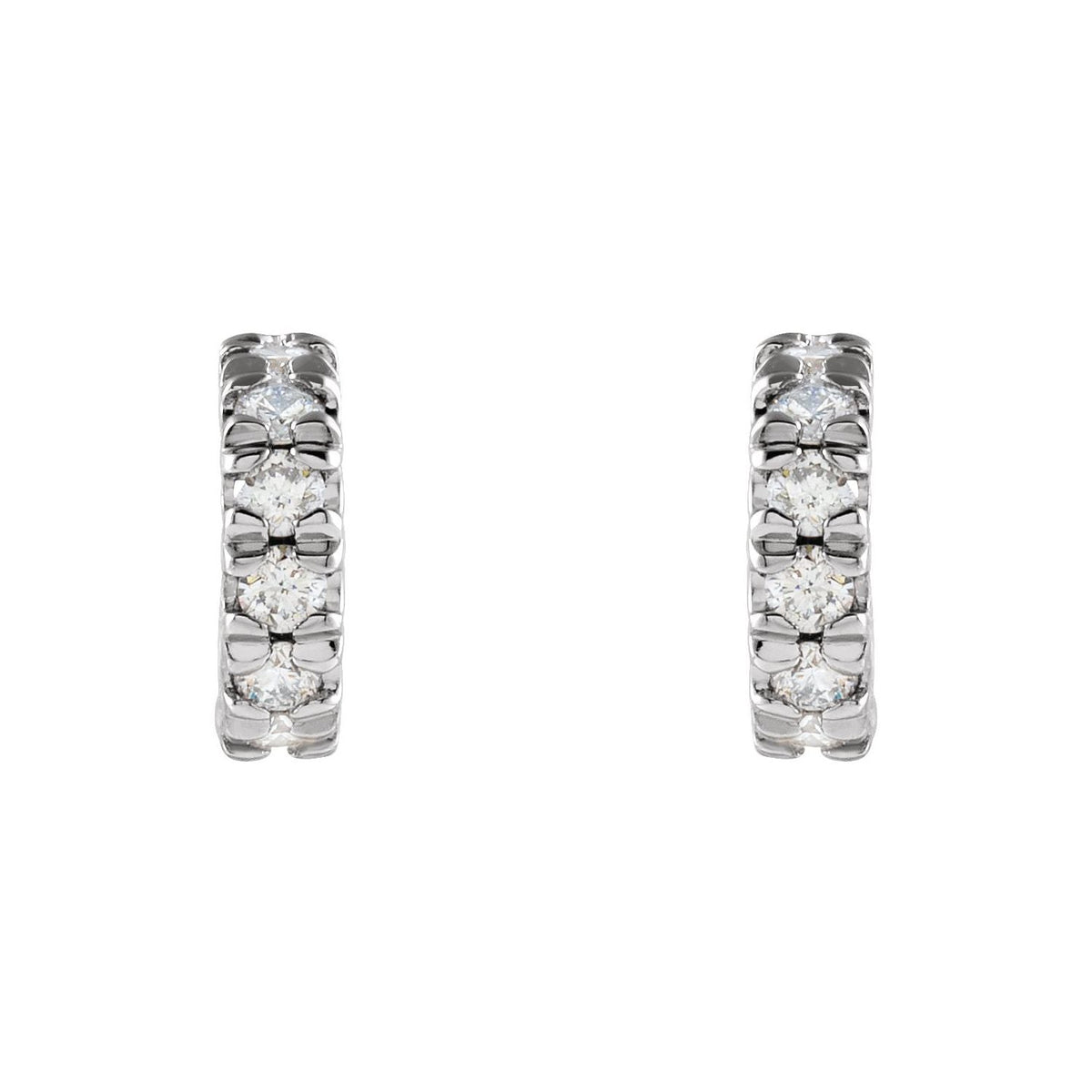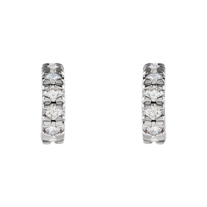 These 14K White Gold 1/4 CTW Lab-Grown Diamond French-Set Huggie Hoop Earrings by Diamond2Deal combine a modern design with classic elegance. Featuring 1/4 carat of lab-grown diamonds with G-H color and SI clarity, these hoops offer a brilliant sparkle. Ideal for daily wear or special occasions, these timeless earrings are a luxurious addition to any jewelry collection.