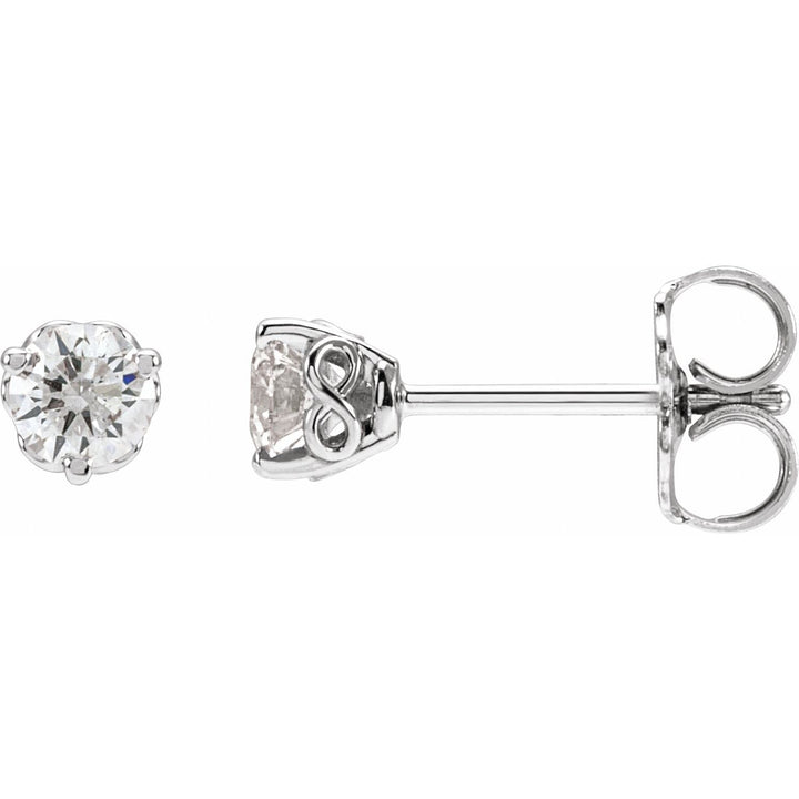 These 14K White Gold Round 1/3ct Lab-Grown Diamond Infinity Earrings by Diamond2Deal feature stunning diamonds with SI clarity and G-H color, providing the perfect balance of elegance and sustainability. These timeless earrings are ideal for any occasion.