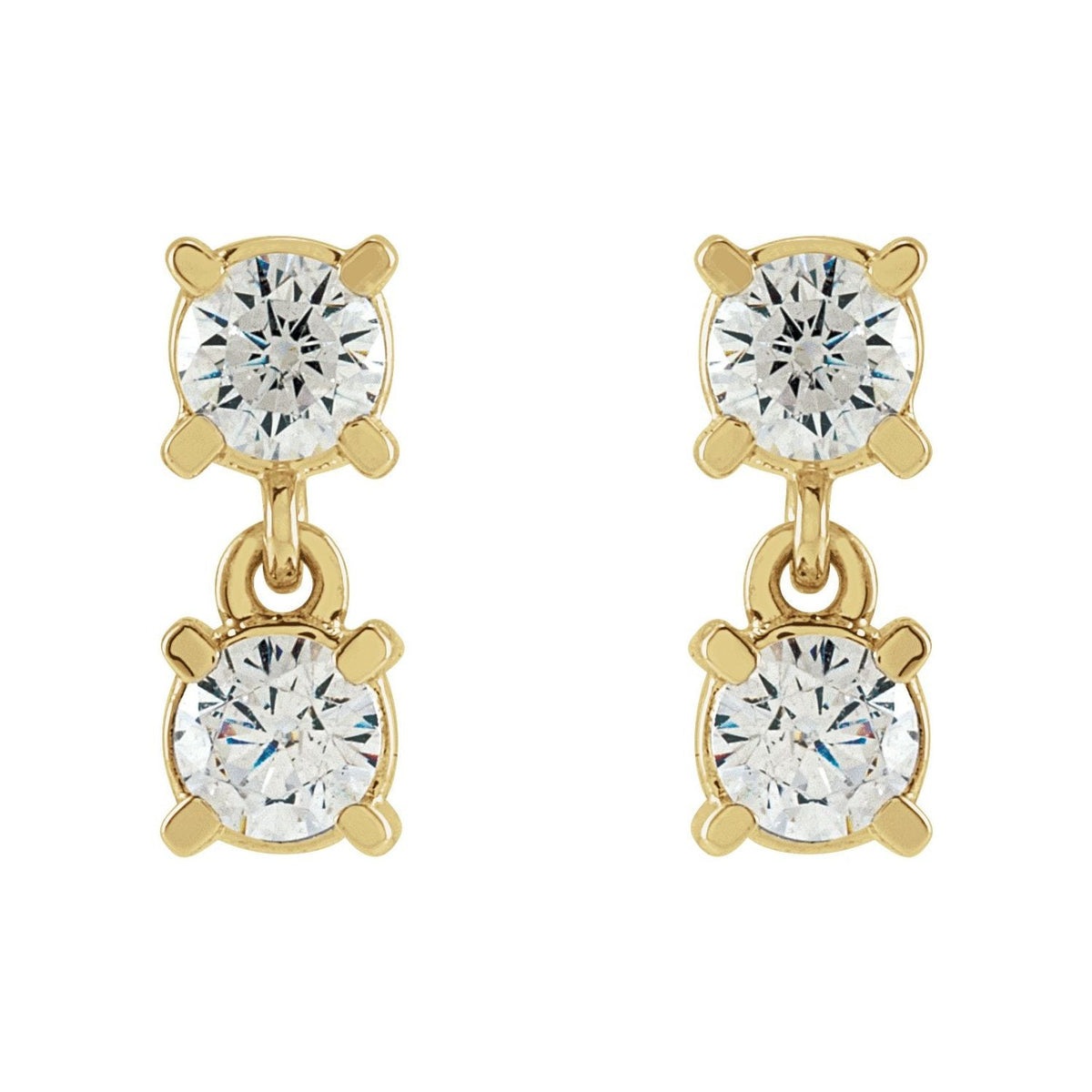 These 14K Yellow Gold 1/2ct Lab-Grown Diamond Two-Stone Earrings by Diamond2Deal exude sophistication. Featuring Color G-H and SI clarity diamonds, these earrings offer a timeless look, ideal for both everyday wear and special occasions.