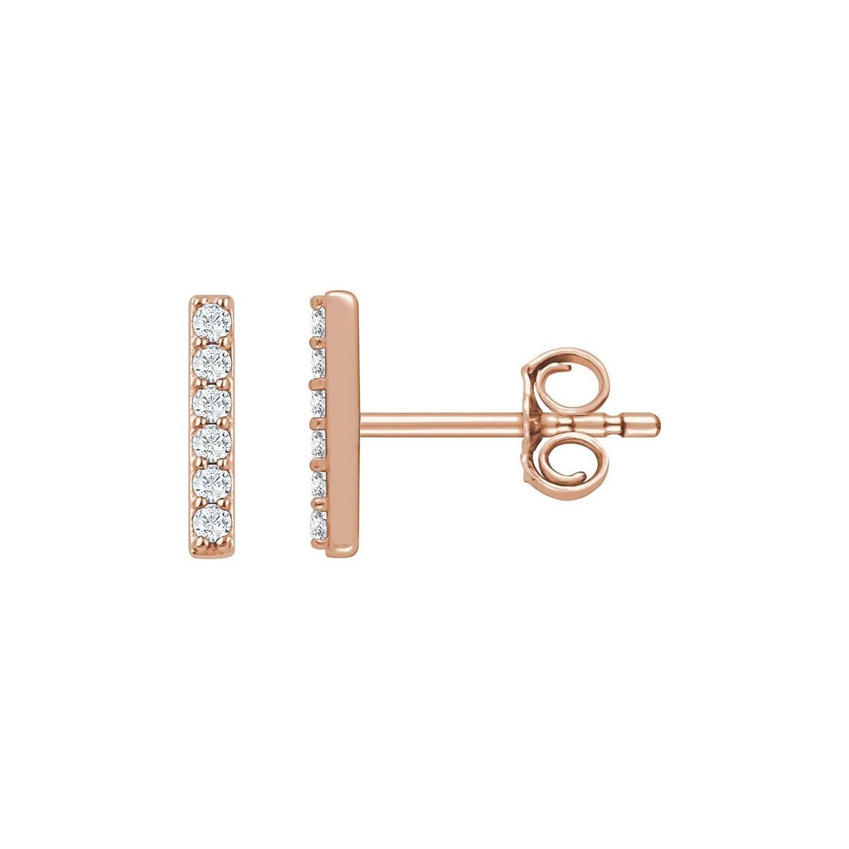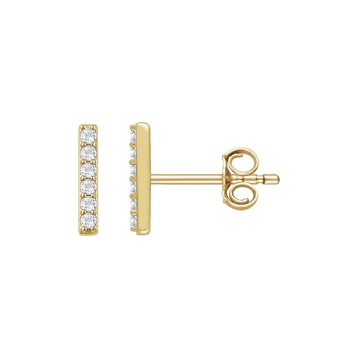 14K Gold 1/10ct Lab-grown Diamond Bar Stud Earrings Clarity SI Color G-H