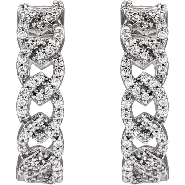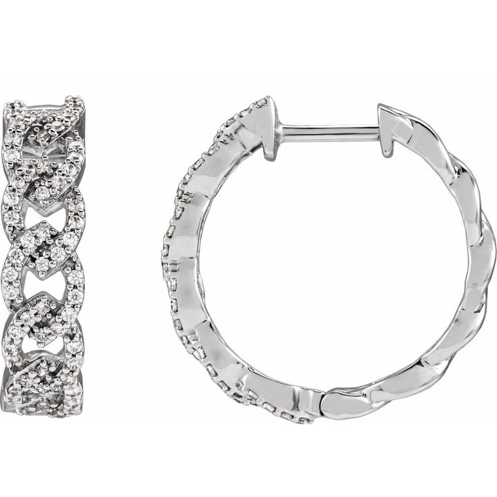 These 14K White Gold 1/2ct Lab-grown Diamond Hoop Earrings by Diamond2Deal offer timeless elegance. Featuring Color G-H and SI clarity diamonds set in 14K white gold, these hoops add sophistication to any outfit. Perfect for both daily wear and special occasions.