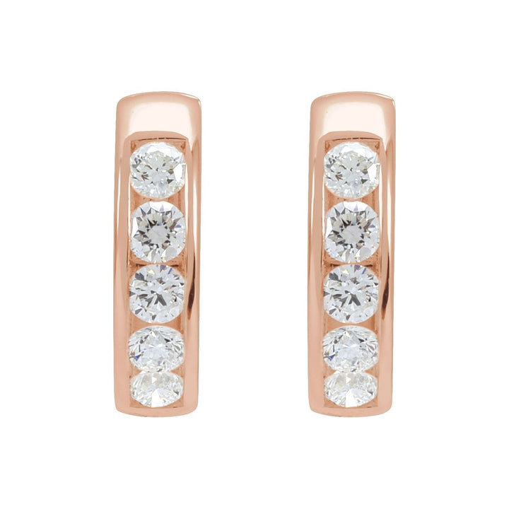 Handcrafted in 14K rose gold with 5/8 CTW lab-grown diamonds, SI clarity, G-H color. Earrings weigh 2.08 grams.