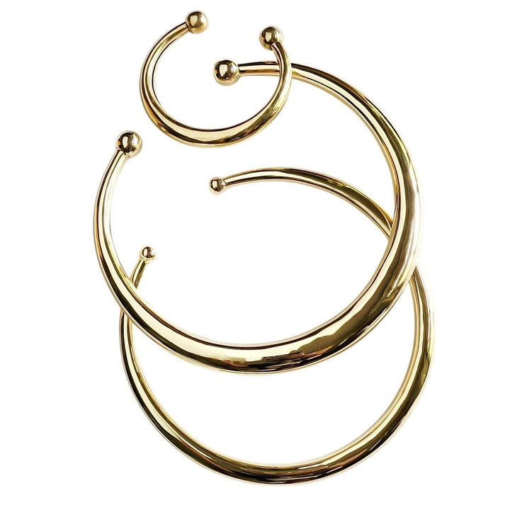 Handmade brass with a gold-tone finish. Features a thicker collar design.