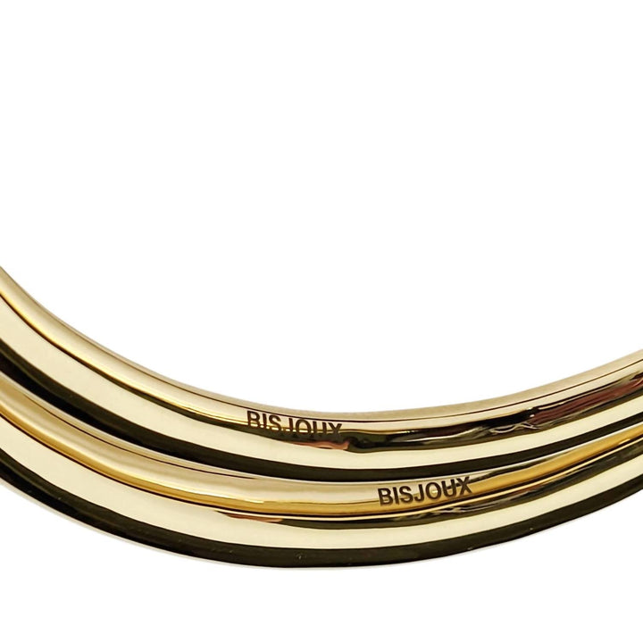 This Women's Brass Tuareg Simple Collar Necklace Choker in Gold by BISJOUX is a bold statement piece. The handmade brass design features a thicker profile that makes it stand out, while the gold-tone finish adds a touch of luxury. This versatile choker adds elegance to any outfit and comes complete with a protective pouch for storage.