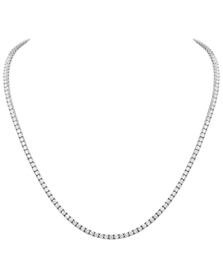 Crafted in 14K white gold. Diamonds: Round diamonds, total carat weight 5.00, Very Good cut, Prong setting. Length: 18 inches. Average Gram Weight: 12.50.